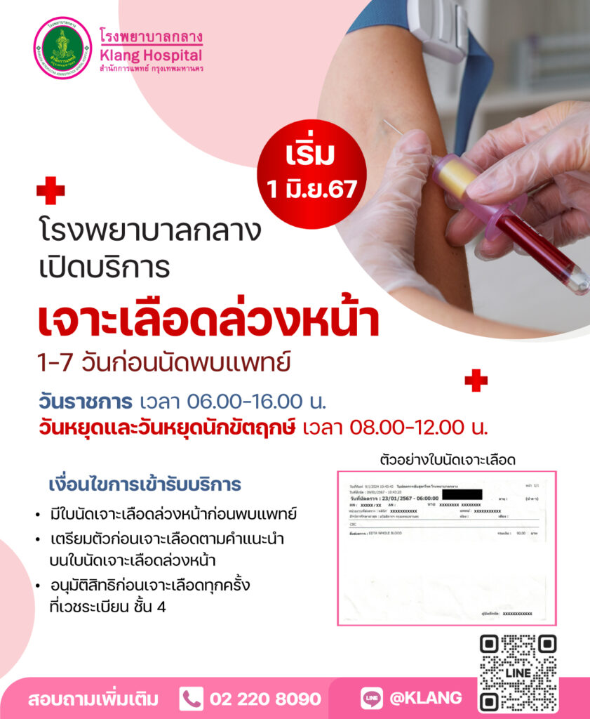 โรงพยาบาลกลาง เปิดให้บริการ เจาะเลือดล่วงหน้า 1 – 7 วันก่อนนัดพบแพทย์