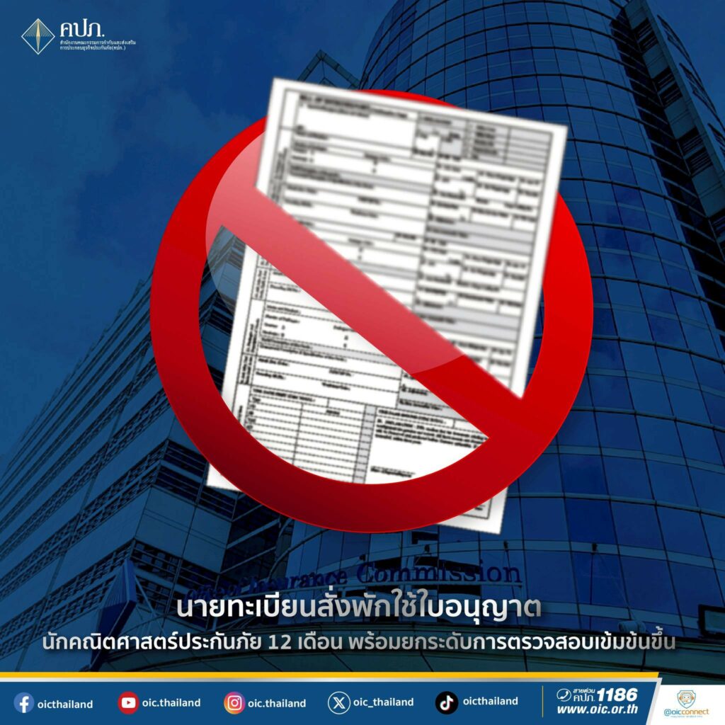 นายทะเบียนสั่งพักใช้ใบอนุญาตนักคณิตศาสตร์ประกันภัย 12 เดือน พร้อมยกระดับการตรวจสอบเข้มข้นขึ้น