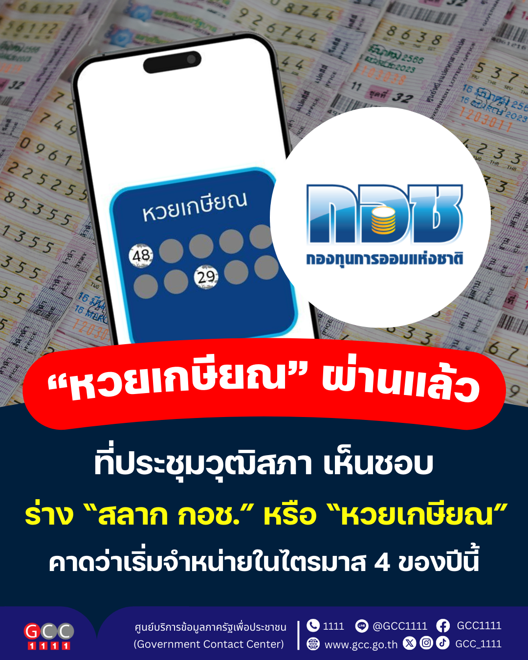 วุฒิสภา เห็นชอบร่างกฎหมาย “สลาก กอช.” หรือ “หวยเกษียณ” ในวาระที่ 2 และ 3 เป็นที่เรียบร้อยแล้ว