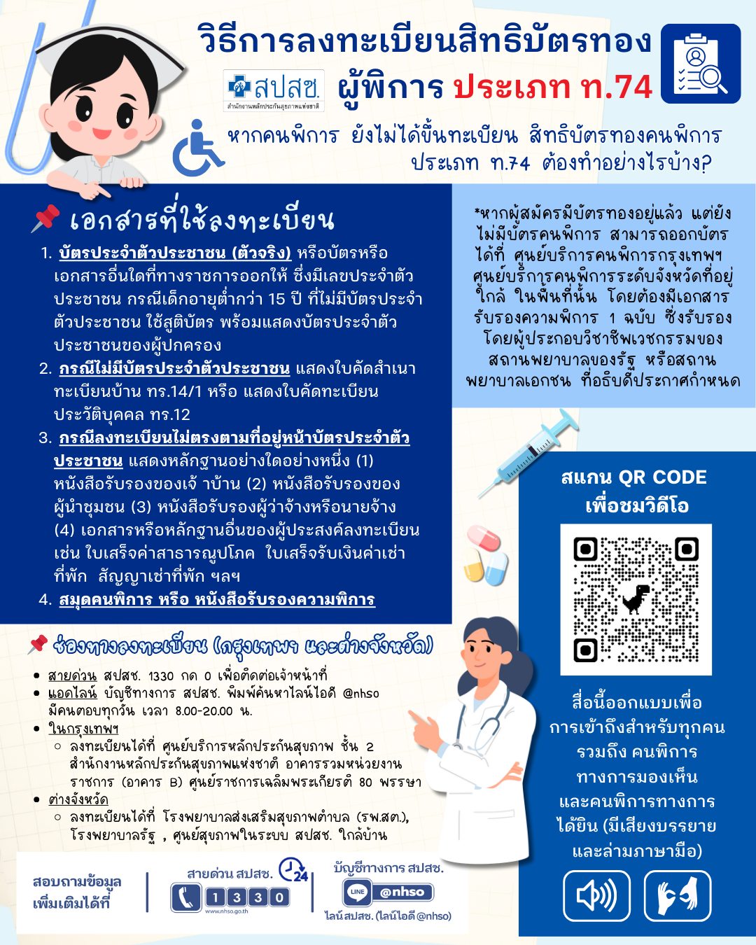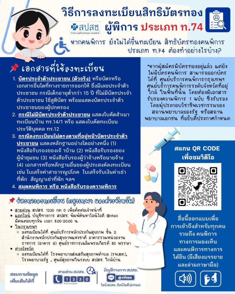 สำนักงานหลักประกันสุขภาพแห่งชาติ แนะนำวิธีการลงทะเบียนสิทธิบัตรทองผู้พิการ ประเภท ท.74