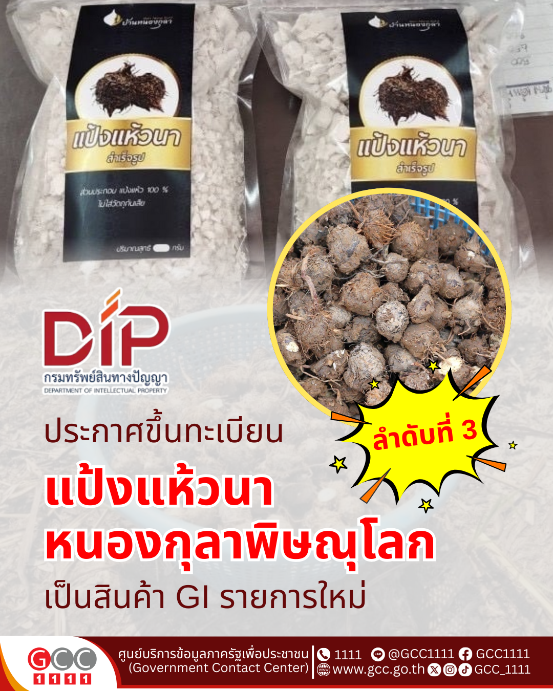 กรมทรัพย์สินทางปัญญา ประกาศขึ้นทะเบียน “แป้งแห้วนาหนองกุลาพิษณุโลก” เป็นสินค้า GI รายการใหม่