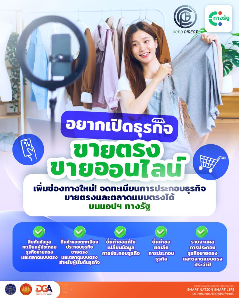 DGA เพิ่มช่องทางใหม่จดทะเบียนการประกอบธุรกิจขายตรงและตลาดแบบตรงได้ บนแอปฯ ทางรัฐ ข่าวสารกิจกรรม DGA เพิ่มช่องทางใหม่จดทะเบียนการประกอบธุรกิจขายตรงและตลาดแบบตรงได้ บนแอปฯ ทางรัฐ สำนักงานพัฒนารัฐบาลดิจิทัล (องค์การมหาชน) เพิ่มช่องทางใหม่จดทะเบียนการประกอบธุรกิจขายตรงและตลาดแบบตรงได้ บนแอปพลิเคชันทางรัฐ ธุรกิจขายตรง การจำหน่ายสินค้าและบริการโดยตรงไปยังผู้บริโภค ณ สถานที่ที่ไม่ใช่ร้านค้าปกติ เช่น บ้านของลูกค้า หรือสถานที่นัดหมาย ผ่านตัวแทนขายตรงหรือผู้จำหน่ายอิสระ ธุรกิจตลาดแบบตรง การเสนอขายสินค้าหรือบริการโดยตรงสู่ผู้บริโภคผ่านช่องทางที่หลากหลาย เช่น โทรศัพท์, อีเมล, โซเชียลมีเดีย, เว็บไซต์, หรือแพลตฟอร์มอีคอมเมิร์ซต่างๆ ทั้งสองแบบนี้ ต้องจดทะเบียนกับ สคบ.ประโยชน์ที่ผู้ประกอบการจะได้รับถูกกฎหมาย มั่นใจได้เพิ่มความน่าเชื่อถือ ไว้วางใจให้ลูกค้าและคู่ค้าป้องกันธุรกิจถูกนำไปเชื่อมโยงกับปัญหาแชร์ลูกโซ่ เพิ่มช่องทางใหม่ สามารถจดทะเบียนประกอบธุรกิจขายตรงและตลาดแบบตรงได้ง่ายๆ บนแอปฯ ทางรัฐ สะดวก ใช้งานได้ทุกที่ทุกเวลา ตลอด 24 ชั่วโมง ที่มา : Facebook DGA Thailand Post Views: 8 FacebookFacebookXTwitterLINELine