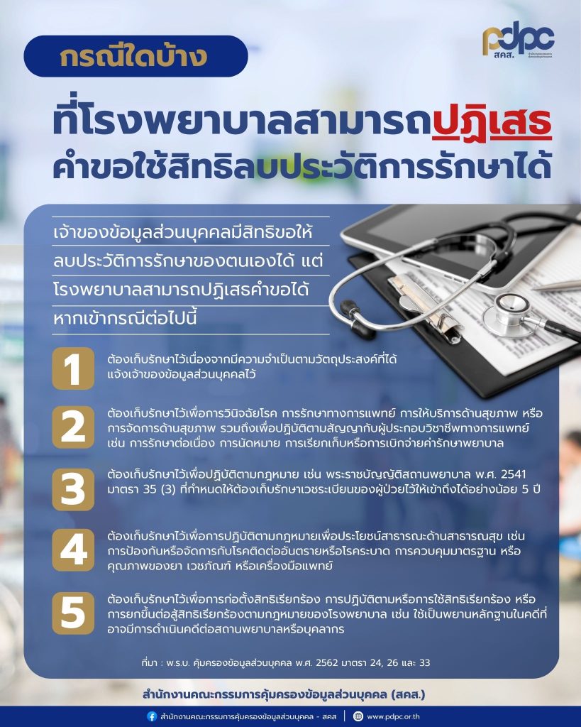 สคส. แจ้งกรณีใดบ้างที่โรงพยาบาลสามารถปฏิเสธคำขอใช้สิทธิลบประวัติการรักษาได้