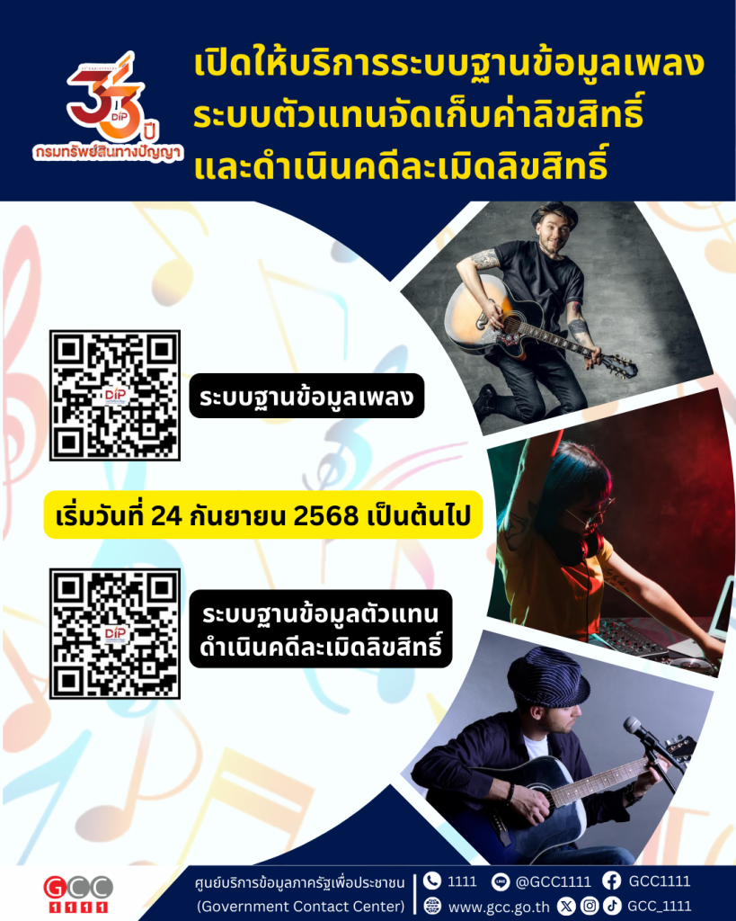 กรมทรัพย์สินทางปัญญา เปิดให้บริการระบบฐานข้อมูลเพลง ข่าวสารกิจกรรม, ไม่มีหมวดหมู่ กรมทรัพย์สินทางปัญญา เปิดให้บริการระบบฐานข้อมูลเพลง กรมทรัพย์สินทางปัญญา เปิดให้บริการระบบฐานข้อมูลเพลง และระบบตัวแทนจัดเก็บค่าลิขสิทธิ์และดำเนินคดีละเมิดลิขสิทธิ์ อำนวยความสะดวกให้ประชาชนผู้ประกอบการค้าในแวดวงธุรกิจการค้า และการบริการเข้าถึงข้อมูลลิขสิทธิ์เพลงและการจัดเก็บค่าลิขสิทธิ์อย่างเป็นธรรม กรมทรัพย์สินทางปัญญาเปิดให้บริการระบบฐานข้อมูลเพลง และระบบตัวแทนจัดเก็บค่าลิขสิทธิ์และดำเนินคดีละเมิดลิขสิทธิ์ สร้างความโปร่งใส เป็นธรรม อำนวยความสะดวกแก่ผู้ประกอบธุรกิจการค้าและการบริการ กรมทรัพย์สินทางปัญญา เปิดให้บริการระบบฐานข้อมูลเพลง และระบบฐานตัวแทนจัดเก็บค่าลิขสิทธิ์และดำเนินคดีละเมิดลิขสิทธิ์ เพื่อสร้างความโปร่งใสในการบริหารจัดการสิทธิในงานลิขสิทธิ์ในยุคดิจิทัล และอำนวยความสะดวกให้ประชาชนผู้ประกอบการค้าในแวดวงธุรกิจการค้าและการบริการเข้าถึงข้อมูลลิขสิทธิ์เพลงและการจัดเก็บค่าลิขสิทธิ์อย่างเป็นธรรมติดตามข้อมูลข่าวสารต่างๆ ของกรมทรัพยสินทางปัญญาได้ที่Website : https://www.ipthailand.go.th/Facebook : กรมทรัพย์สินทางปัญญาLine Official : @dipthailandInstagram : ipthailandTwitter : @dip_thailandYoutube : กรมทรัพย์สินทางปัญญาTiktok : กรมทรัพย์สินทางปัญญา (dipthailand) ที่มา : Facebook : กรมทรัพย์สินทางปัญญา Post Views: 21 FacebookFacebookXTwitterLINELine