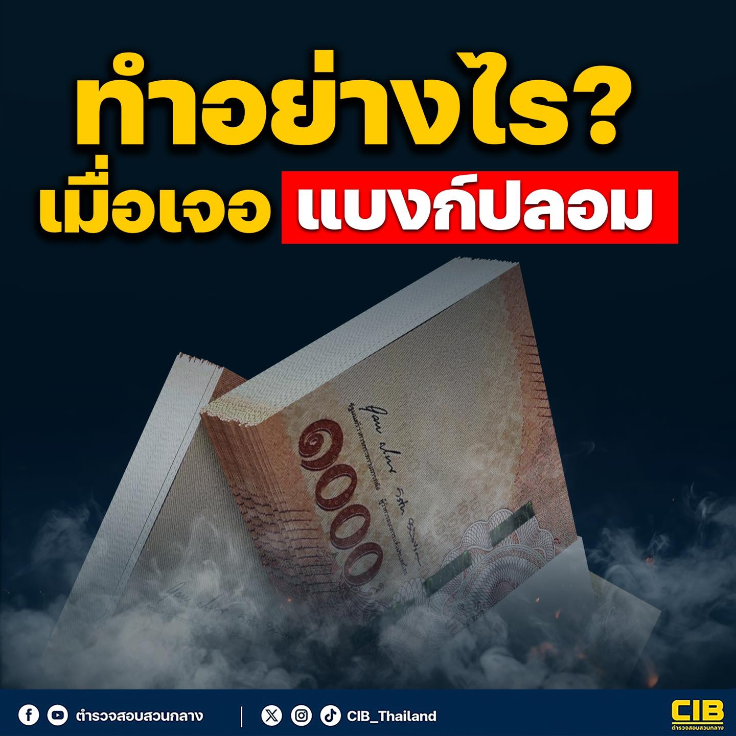 ตำรวจสอบสวนกลาง(CIB) มีความห่วงใยประชาชน อยากให้หมั่นตรวจสอบแบงก์ที่ได้มาให้ดีทุกครั้ง เพื่อที่จะได้ไม่ตกเป็นเหยื่อของมิจฉาชีพ