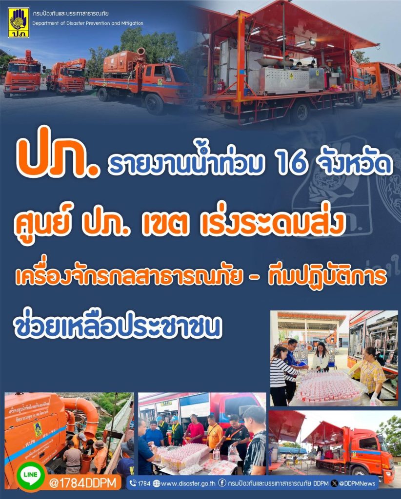 ปภ. รายงานยังคงมีสถานการณ์น้ำท่วมในพื้นที่ 16 จังหวัด เร่งช่วยเหลือประชาชน