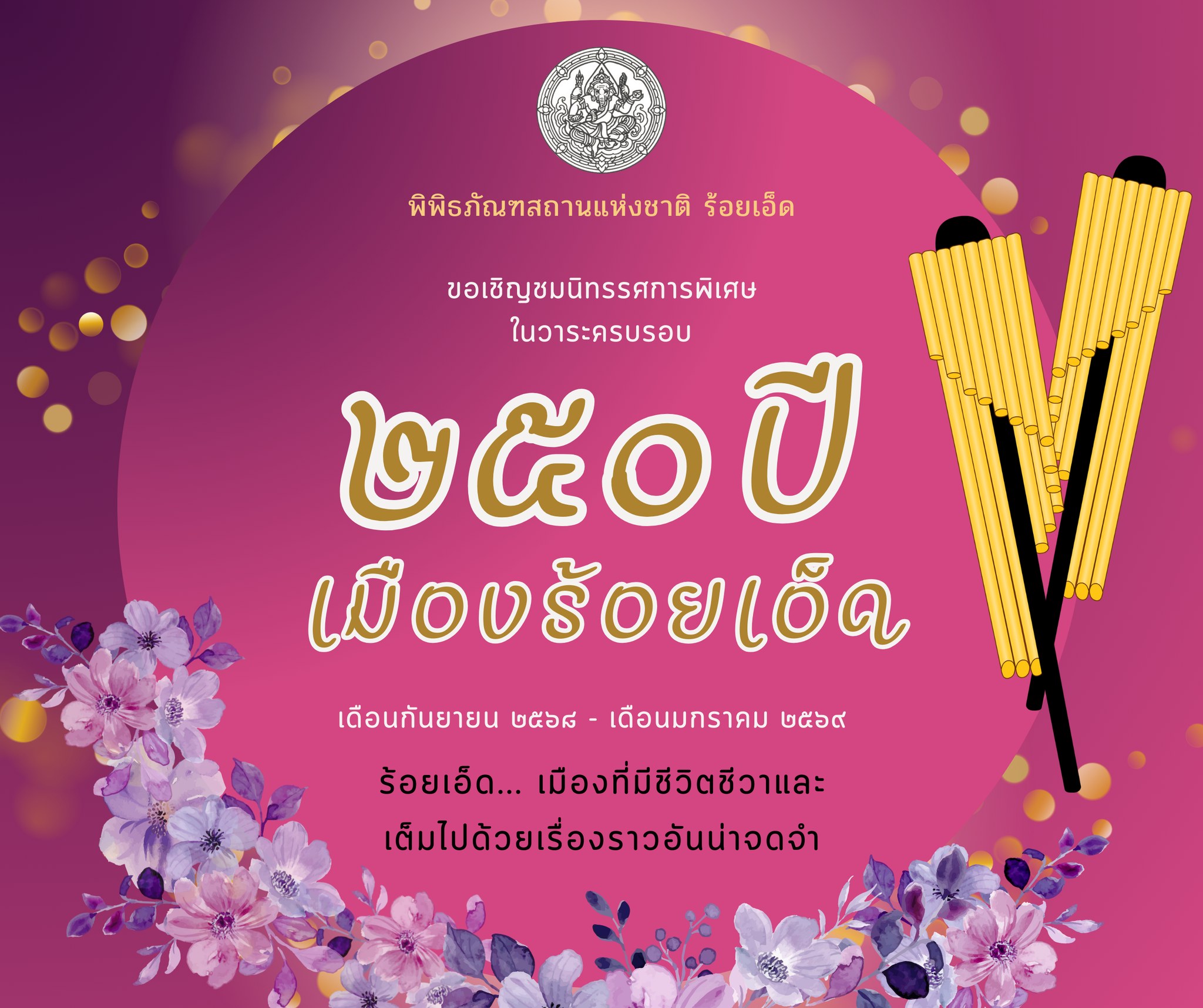 พิพิธภัณฑสถานแห่งชาติ ร้อยเอ็ด เชิญชมนิทรรศการพิเศษ 250 ปีเมืองร้อยเอ็ด ตั้งแต่บัดนี้ – 31 ม.ค 69