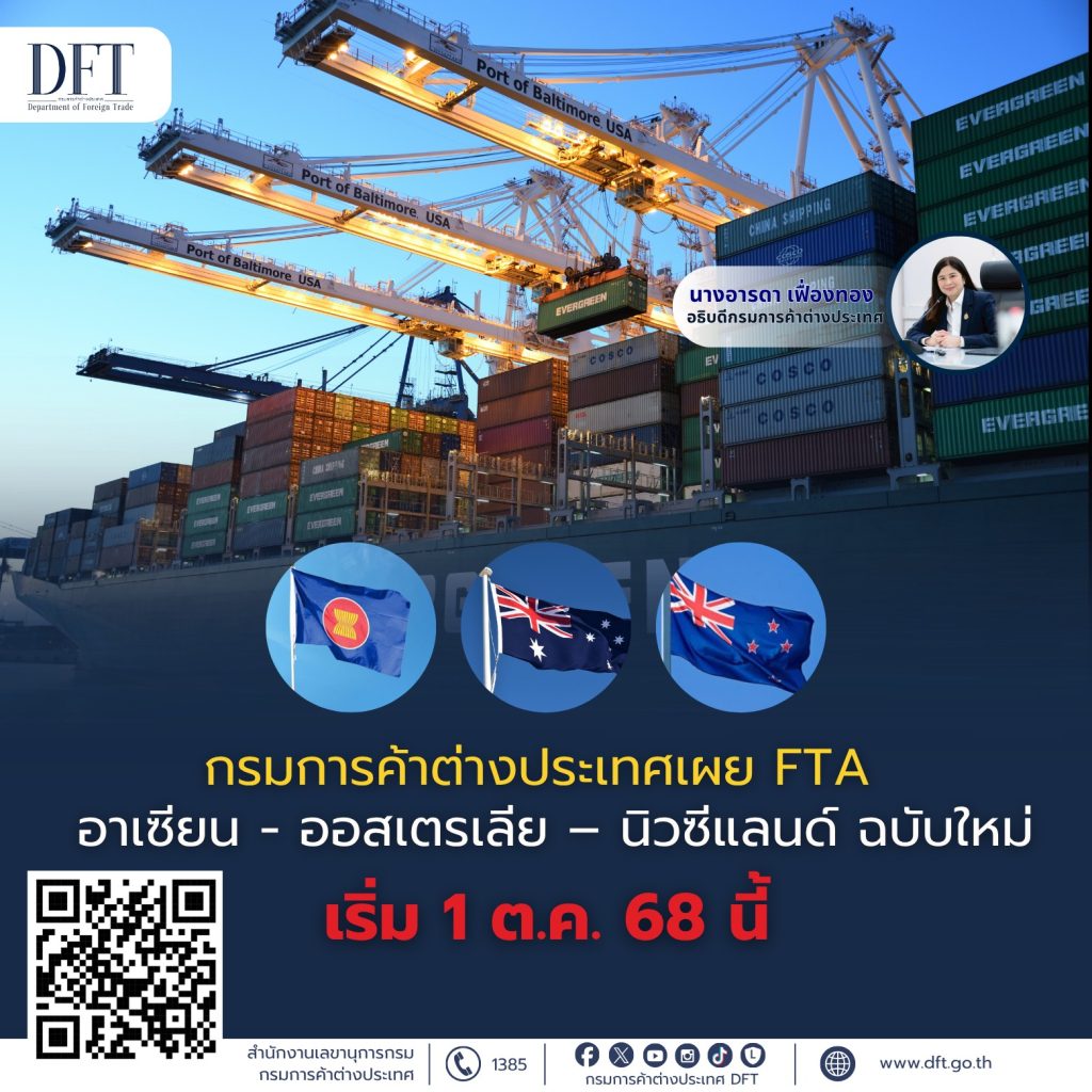 กรมการค้าต่างประเทศ พร้อมให้บริการ FTA อาเซียน – ออสเตรเลีย – นิวซีแลนด์ ฉบับใหม่ เริ่ม 1 ต.ค. 68