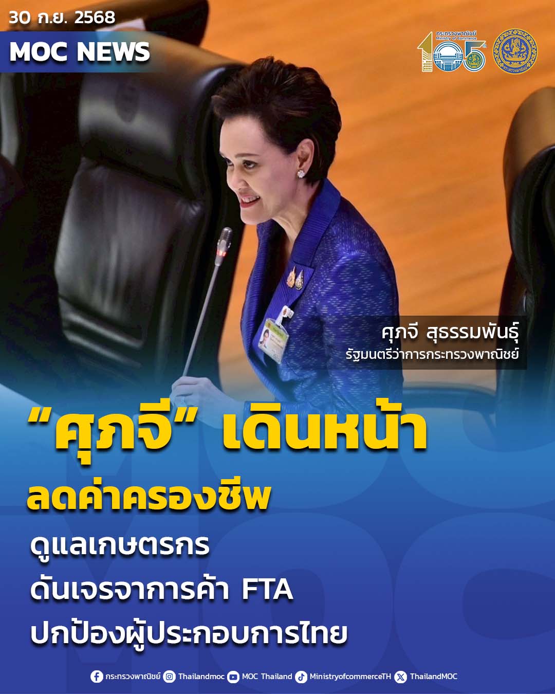 กระทรวงพาณิชย์ เร่งลดค่าครองชีพ ดูแลเกษตรกร ผลักดันเจรจาการค้าสหรัฐฯ