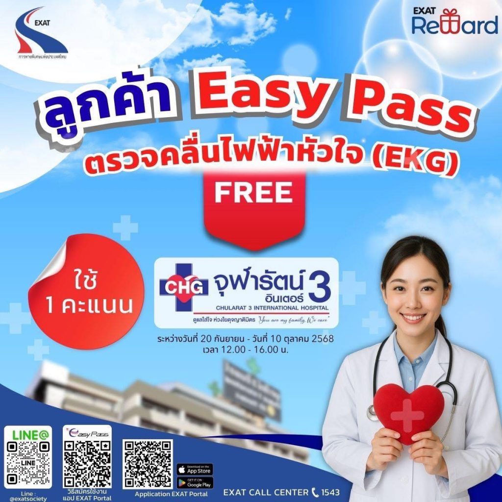 กทพ. แนะนำลูกค้า Easy Pass รับสิทธิ์ตรวจคลื่นไฟฟ้าหัวใจ (EKG) ฟรี บัดนี้ – 10 ต.ค. 68