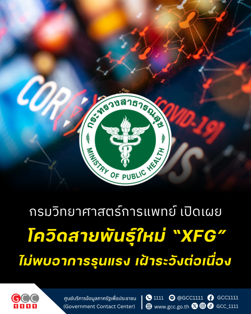 กรมวิทยาศาสตร์การแพทย์ พบโควิดสายพันธุ์ใหม่ “XFG” ผู้ป่วยยังไม่รุนแรง แต่ย้ำเฝ้าระวังต่อเนื่อง