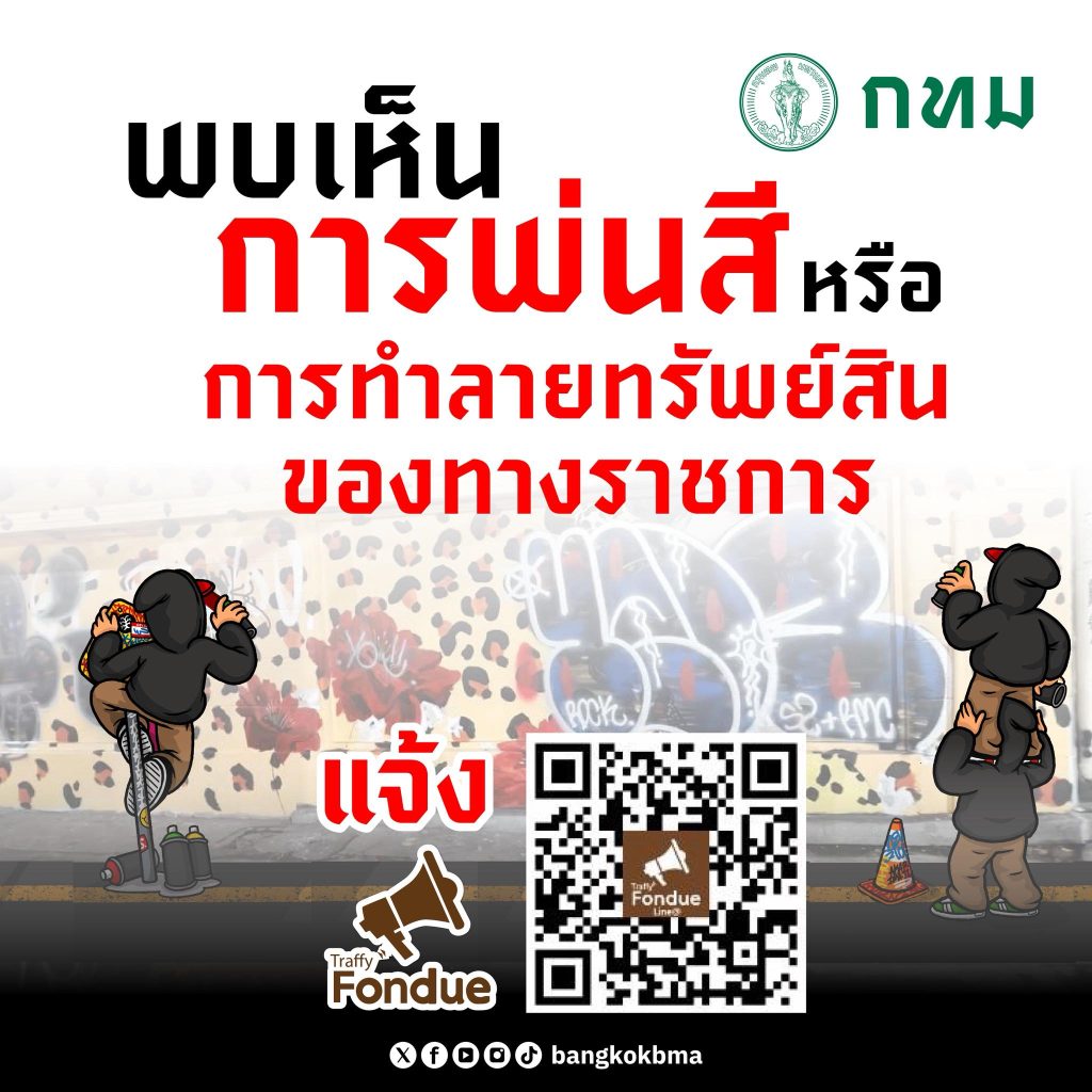 กรุงเทพมหานคร แนะนำพบเห็นการพ่นสี หรือการทำลายทรัพย์สินของทางราชการ แจ้ง TraffyFondue