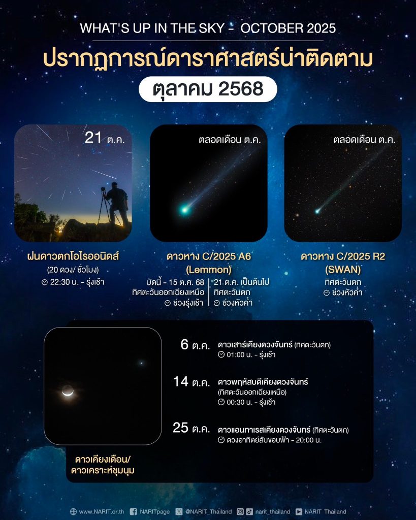 สถาบันวิจัยดาราศาสตร์แห่งชาติ แนะนำปรากฏการณ์ดาราศาสตร์น่าติดตามตลอดเดือนตุลาคม 2568