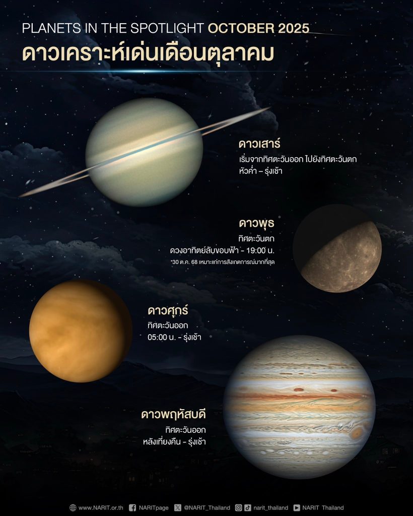 • สถาบันวิจัยดาราศาสตร์แห่งชาติ แนะนำปรากฏการณ์ดาราศาสตร์น่าติดตาม และดาวเคราะห์เด่น เดือนตุลาคม 2568