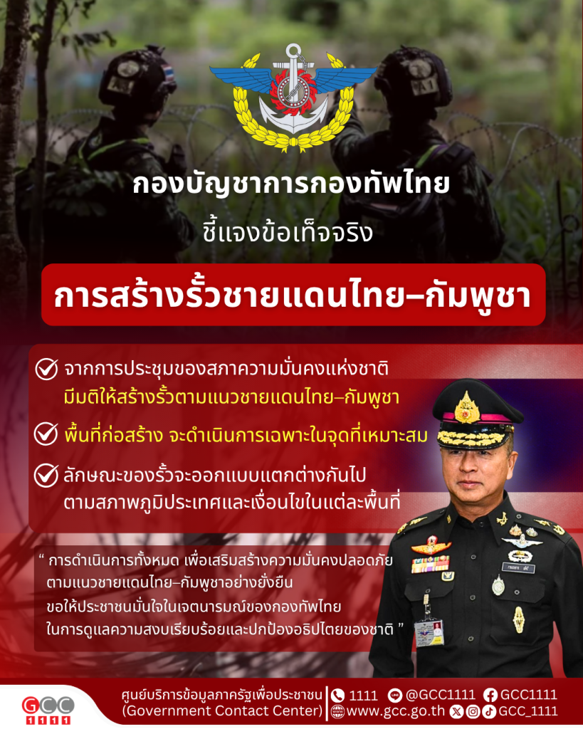 สมช. เห็นชอบสร้างรั้วชายแดนไทย – กัมพูชา มอบกองทัพกำหนดพิกัด ย้ำกฎหมาย – คำนึงมนุษยธรรม