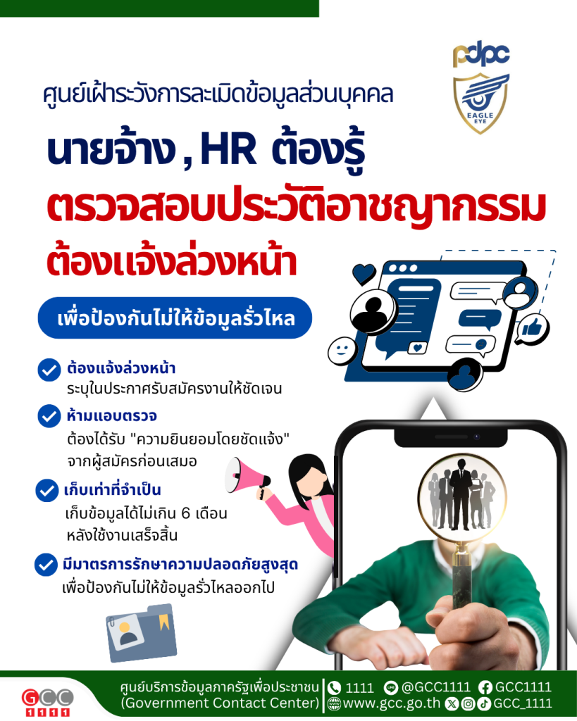 ศูนย์เฝ้าระวังการละเมิดข้อมูลส่วนบุคคล เปิดเผย นายจ้างและ HR ต้องการตรวจสอบประวัติอาชญากรรม ต้องแจ้งล่วงหน้า