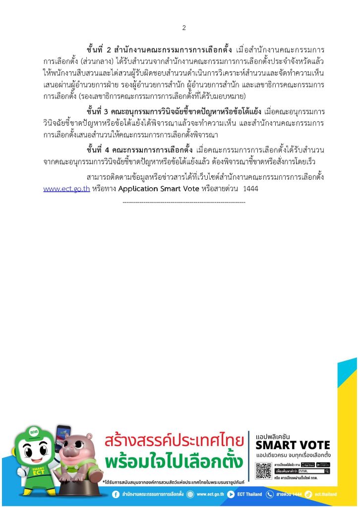 สามารถติดตามข้อมูลหรือข่าวสารได้ที่เว็บไซต์สำนักงานคณะกรรมการการเลือกตั้ง www.ect.go.th หรือทาง Application Smart Vote หรือสายด่วน 1444