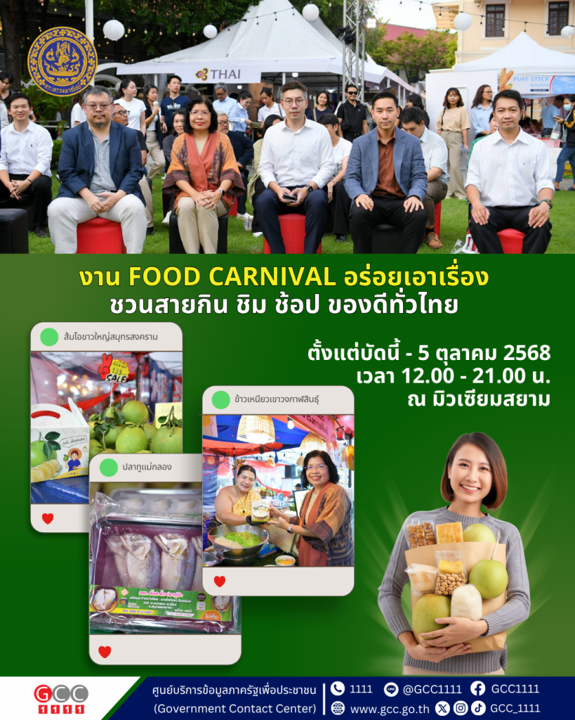 กรมทรัพย์สินทางปัญญา จับมือ สื่อออนไลน์เส้นทางเศรษฐี นำสินค้า GI เข้าร่วมงานเทศกาลอาหาร Food Carnival “อร่อยเอาเรื่อง” พร้อมเชิญชวนสายกิน ชิม ช้อป มาลิ้มลองพิสูจน์ความอร่อยของ 7 สินค้า GI จากเหนือจรดใต้ ระหว่างวันที่ 3 – 5 ตุลาคม 2568 เวลา 12.00 – 21.00 น. ณ มิวเซียมสยาม