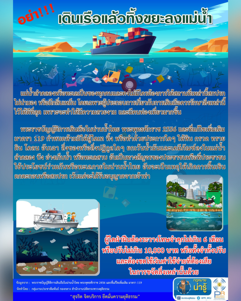 กระทรวงยุติธรรม แนะนำกฎหมายน่ารู้ เรื่อง อย่าเดินเรือแล้วทิ้งขยะลงแม่น้ำ