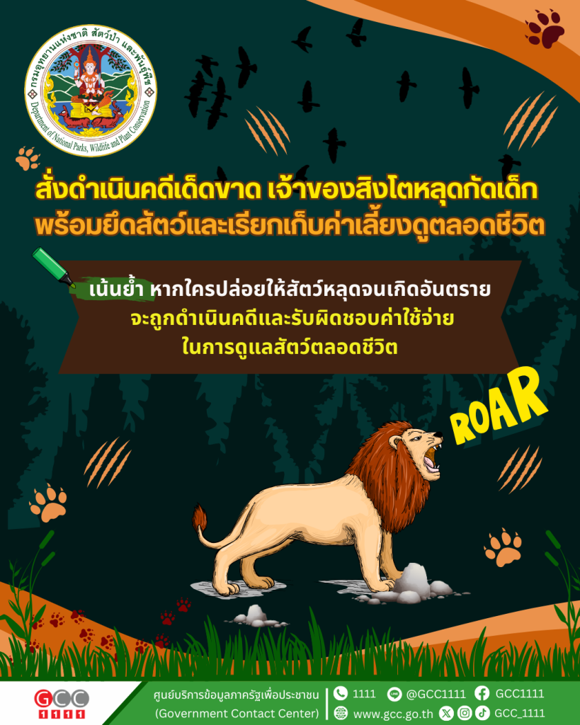 กรมอุทยานแห่งชาติ สัตว์ป่า และพันธุ์พืช สั่งดำเนินคดีเด็ดขาด เจ้าของสิงโตหลุดทำร้ายเด็ก