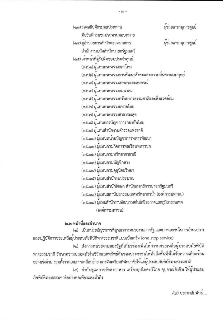 โดยที่ได้เกิดสถานการณ์ภัยพิบัติทางธรรมชาติในพื้นที่หลายจังหวัดทั่วประเทศ ส่งผลให้เกิด ความเสียหายต่อโครงสร้างพื้นฐาน ระบบสาธารณูปโภค และความเสียหายต่อพี่น้องประชาชนในวงกว้าง เพื่อให้การอำนวยการและบริหารสถานการณ์ภัยพิบัติทางธรรมชาติ เป็นไปด้วยความเรียบร้อย รวดเร็ว และ เกิดผลเป็นรูปธรรมอย่างมีประสิทธิภาพ อาศัยอำนาจตามความในมาตรา 11 (2) และ (4) แห่งพระราชบัญญัติ ระเบียบบริหารราชการแผ่นดิน พ.ศ. 2534 จึงให้แต่งตั้งคณะกรรมการอำนวยการและบริหารสถานการณ์ ภัยพิบัติทางธรรมชาติ และจัดตั้งศูนย์ปฏิบัติการช่วยเหลือผู้ประสบภัยพิบัติทางธรรมชาติ ดังต่อไปนี้