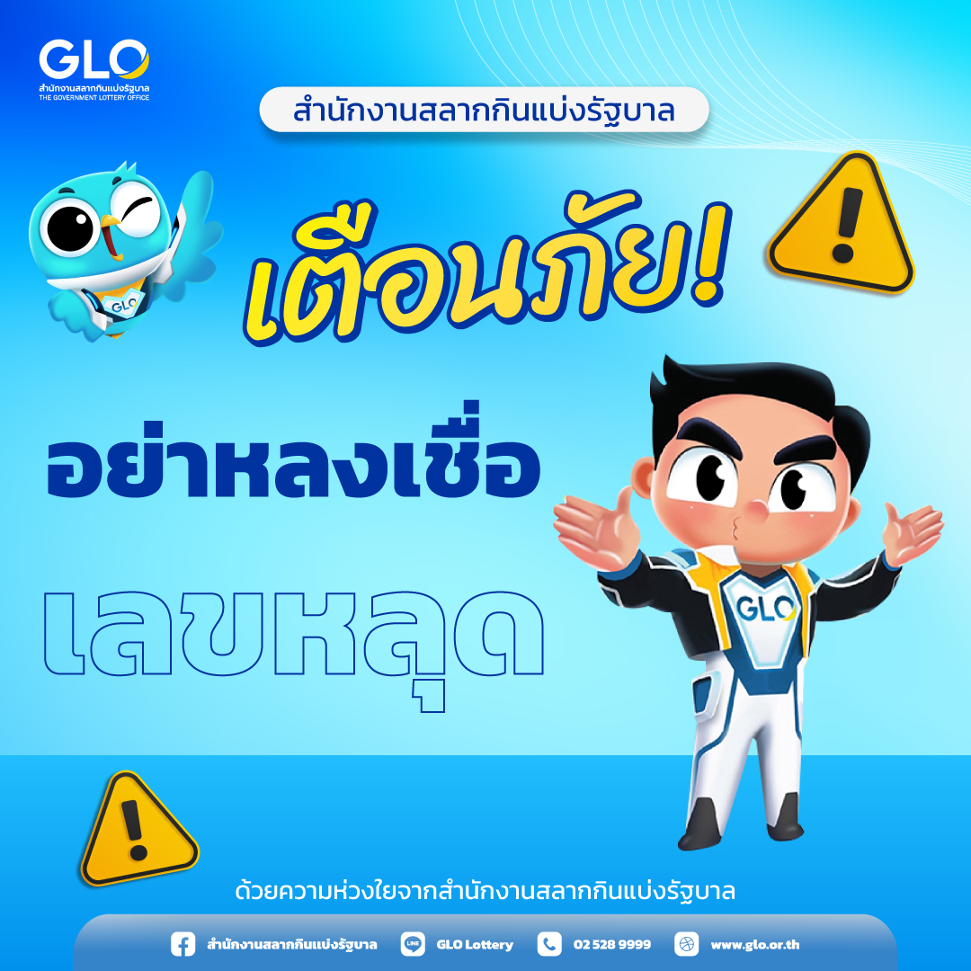 สำนักงานสลากกินแบ่งรัฐบาล (GLO) ขอย้ำเตือนประชาชน อย่าหลงเชื่อผู้ที่อ้างว่ามี “เลขล็อก” “เลขหลุด” หรือ “เลขวงใน” ก่อนออกรางวัล เพราะเป็นเรื่องหลอกลวง 100%