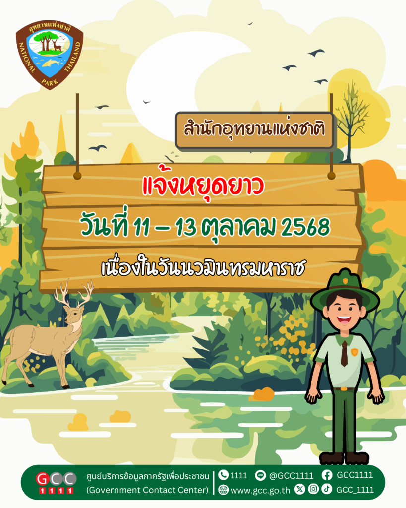 สำนักอุทยานแห่งชาติ แจ้งวันหยุดยาว เนื่องในวันนวมินทรมหาราช วันที่ 11 – 13 ต.ค. 68 ข่าวสารกิจกรรม สำนักอุทยานแห่งชาติ แจ้งวันหยุดยาว เนื่องในวันนวมินทรมหาราช วันที่ 11 – 13 ต.ค. 68 สำนักอุทยานแห่งชาติ แจ้งวันหยุดยาว เนื่องในวันคล้ายวันสวรรคต พระบาทสมเด็จพระบรมชนกาธิเบศร มหาภูมิพลอดุลยเดชมหาราช บรมนาถบพิตร หรือวันนวมินทรมหาราช ในวันที่ 11 – 13 ตุลาคม 2568 นักท่องเที่ยวสามารถตรวจสอบข้อมูลการปิดแหล่งท่องเที่ยวในอุทยานแห่งชาติต่างๆปิดประจำปี เพื่อฟื้นฟูทรัพยากรปิดเฝ้าระวังเหตุภัยพิบัติปิดเพื่อปรับปรุงได้ที่นี่ https://docs.google.com/…/2PACX…/pubhtml ที่มา : Facebook สำนักอุทยานแห่งชาติ – National Parks of Thailand Post Views: 46 FacebookFacebookXTwitterLINELine