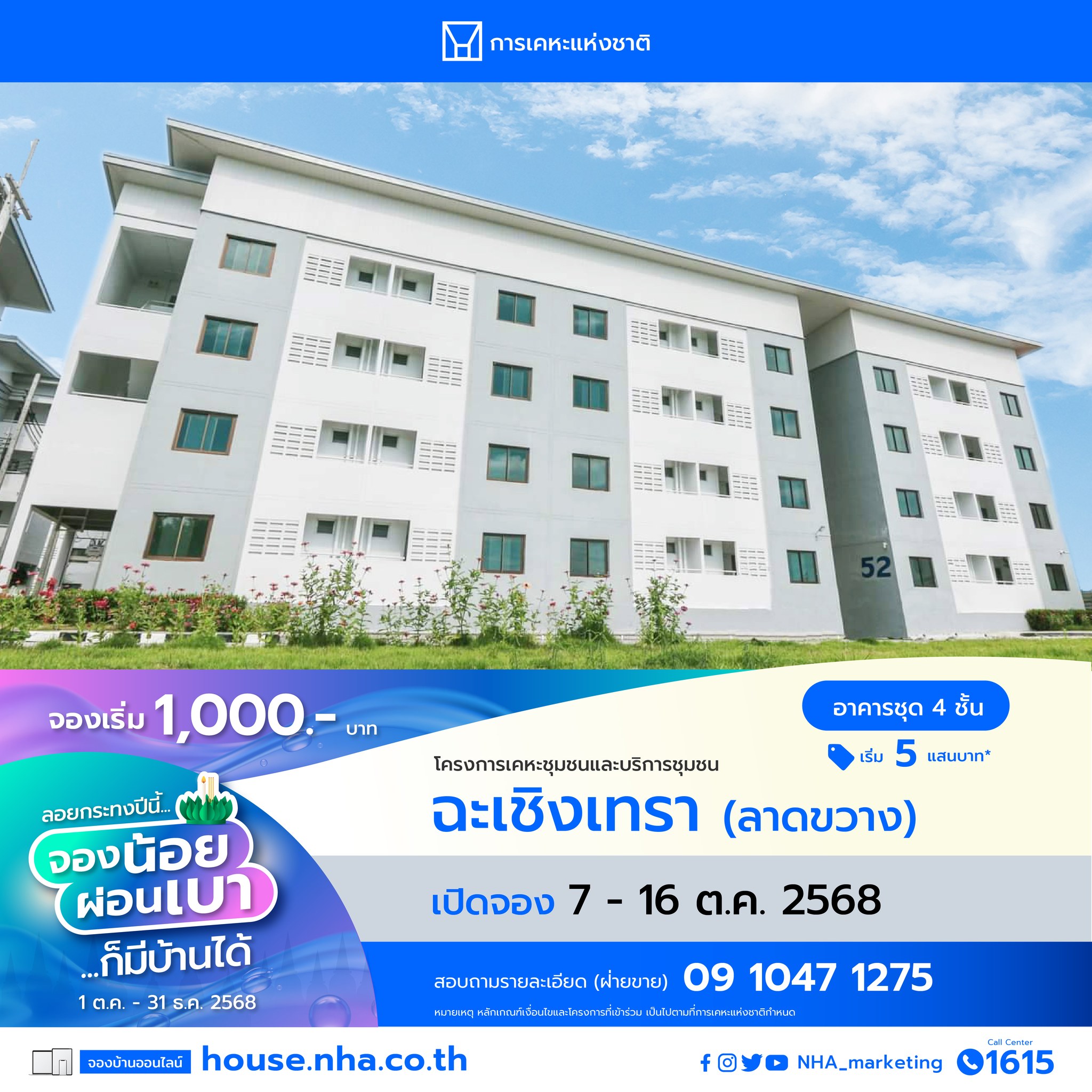 การเคหะแห่งชาติ เปิดจองโครงการเคหะชุมชนและบริการชุมชนฉะเชิงเทรา (ลาดขวาง) บัดนี้ – 16 ต.ค. 68 ข่าวสารกิจกรรม การเคหะแห่งชาติ เปิดจองโครงการเคหะชุมชนและบริการชุมชนฉะเชิงเทรา (ลาดขวาง) บัดนี้ – 16 ต.ค. 68 การเคหะแห่งชาติ เปิดจองโครงการเคหะชุมชนและบริการชุมชนฉะเชิงเทรา (ลาดขวาง) ประเภทอาคารชุดพักอาศัยทำเลลาดขวาง–บ้านโพธิ์ ใกล้นิคมอุตสาหกรรม ใกล้มอเตอร์เวย์ ใกล้ทุกจุดหมาย ราคาเริ่ม 5 แสนบาท จองเพียง 1,000 บาท เปิดจองตั้งแต่บัดนี้ – 16 ตุลาคม 2568 สอบถามเพิ่มเติม โทร. 09 1047 1275 หรือ Call Center 1615 ที่มา : Facebook NHA marketing Post Views: 16 FacebookFacebookXTwitterLINELine