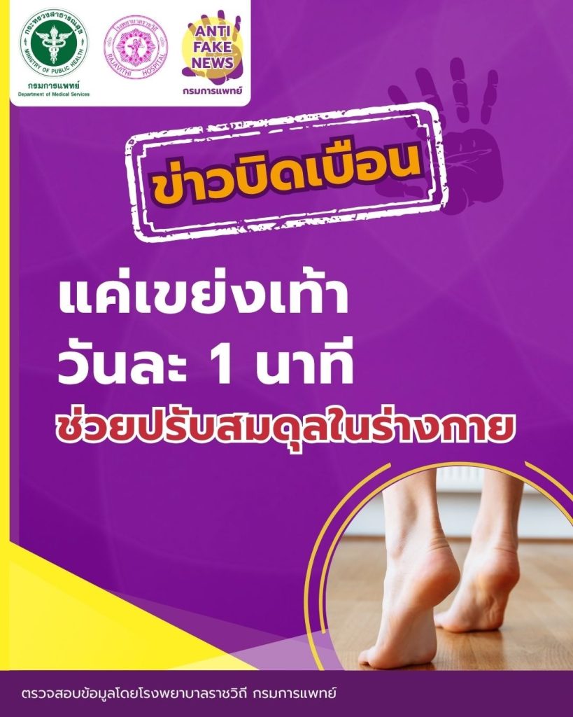 กรมการแพทย์ เผยเขย่งเท้าวันละ 1 นาที ช่วยกระตุ้นการไหลเวียนเลือดได้จริง แต่ไม่ถึงขั้นล้างพิษหรือรักษาโรค