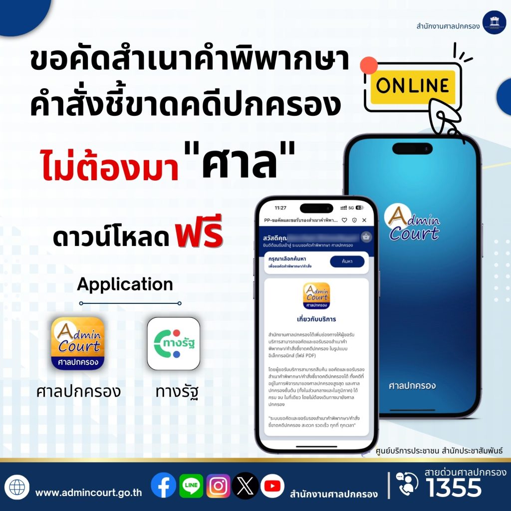 ศาลปกครอง เปิดบริการคัดสำเนาคำพิพากษาออนไลน์ ผ่านแอป “ศาลปกครอง” และ “ทางรัฐ”