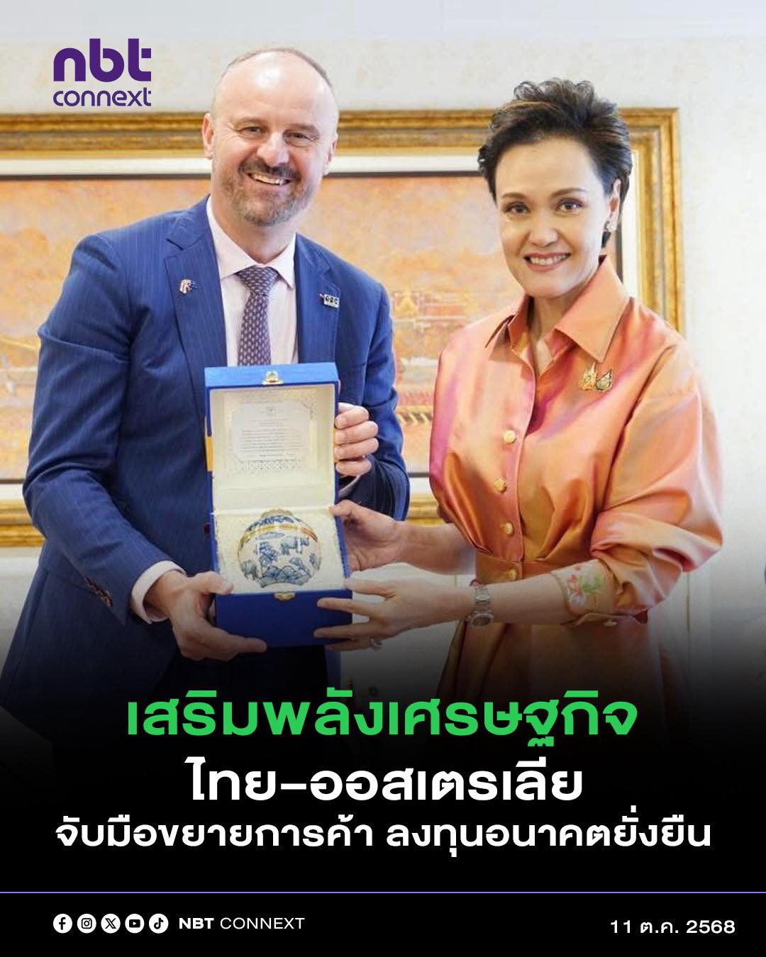 กระทรวงพาณิชย์ เดินหน้ากระชับความร่วมมือการค้า-การลงทุนไทย-ออสเตรเลีย ข่าวสารกิจกรรม กระทรวงพาณิชย์ เดินหน้ากระชับความร่วมมือการค้า-การลงทุนไทย-ออสเตรเลีย นางศุภจี สุธรรมพันธุ์ รัฐมนตรีว่าการกระทรวงพาณิชย์ หารือกับนายแอนดรูว์ บาร์ ผู้ว่าการรัฐออสเตรเลียนแคพิทอลเทร์ริทอรี เพื่อกระชับความร่วมมือด้านการค้าและการลงทุนระหว่างไทย–ออสเตรเลีย โดยทั้งสองฝ่ายเห็นพ้องที่จะส่งเสริมการลงทุนในสาขาที่มีศักยภาพ เช่น การศึกษา สุขภาพ การท่องเที่ยว วัฒนธรรม และเทคโนโลยีสีเขียว พร้อมแลกเปลี่ยนแนวทางการพัฒนาอย่างยั่งยืนและการใช้เทคโนโลยีเพื่อรับมือกับการเปลี่ยนแปลงสภาพภูมิอากาศ นอกจากนี้ยังหารือการขยายโครงการ Thai SELECT ในออสเตรเลียเพื่อส่งเสริมภาพลักษณ์อาหารไทย และเห็นพ้องสนับสนุนการแลกเปลี่ยนด้านธุรกิจและบริการระหว่างกันต่อเนื่อง ทั้งนี้ ไทยถือเป็นคู่ค้าอันดับ 9 ของออสเตรเลีย โดยมีมูลค่าการค้ารวมกว่า 11,136 ล้านดอลลาร์สหรัฐ ในช่วง 8 เดือนแรกของปี 2568 ซึ่งสะท้อนถึงความสัมพันธ์ทางเศรษฐกิจที่แน่นแฟ้นและมีแนวโน้มเติบโตต่อเนื่อง ที่มา : Facebook : NBT Connext Post Views: 5 FacebookFacebookXTwitterLINELine