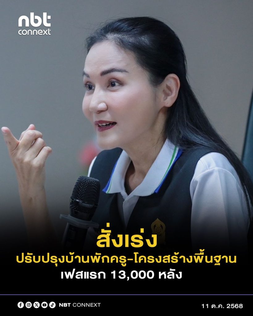 โดยเฟสแรกในปีนี้ จะเร่งดำเนินการปรับปรุงบ้านพักครูที่ทรุดโทรมและครูยังอาศัยอยู่ 13,000 หลัง (จากทั้งหมด 14,000 หลัง) และบรรจุเป็นแผนพัฒนาปรับปรุงปีงบประมาณ 2570 ให้ครบทั้งหมด 40,000 หลังต่อไป นอกจากนี้ จะผลักดันให้ครูได้รับสิทธิ์ซื้อบ้านในโครงการของการเคหะแห่งชาติ เพื่อให้ครูที่มีกำลังและต้องการมีบ้านเป็นของตัวเอง ได้สิทธิ์ซื้อราคาถูกและดอกเบี้ยต่ำอีกด้วย