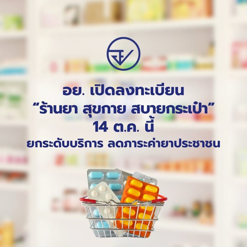 อย. เปิดลงทะเบียน “ร้านยา สุขกาย สบายกระเป๋า” ผ่านช่องทางออนไลน์ เริ่ม 14 ตุลาคม 2568