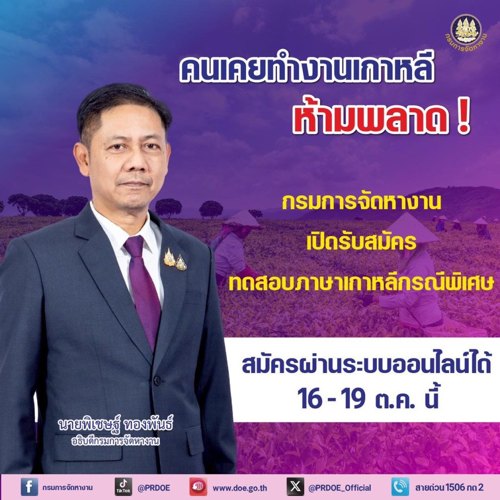 คนเคยทำงานเกาหลี ห้ามพลาด ! กรมการจัดหางาน เปิดรับสมัครทดสอบภาษาเกาหลีกรณีพิเศษ สมัครผ่านระบบออนไลน์ได้ 16–19 ต.ค. นี้