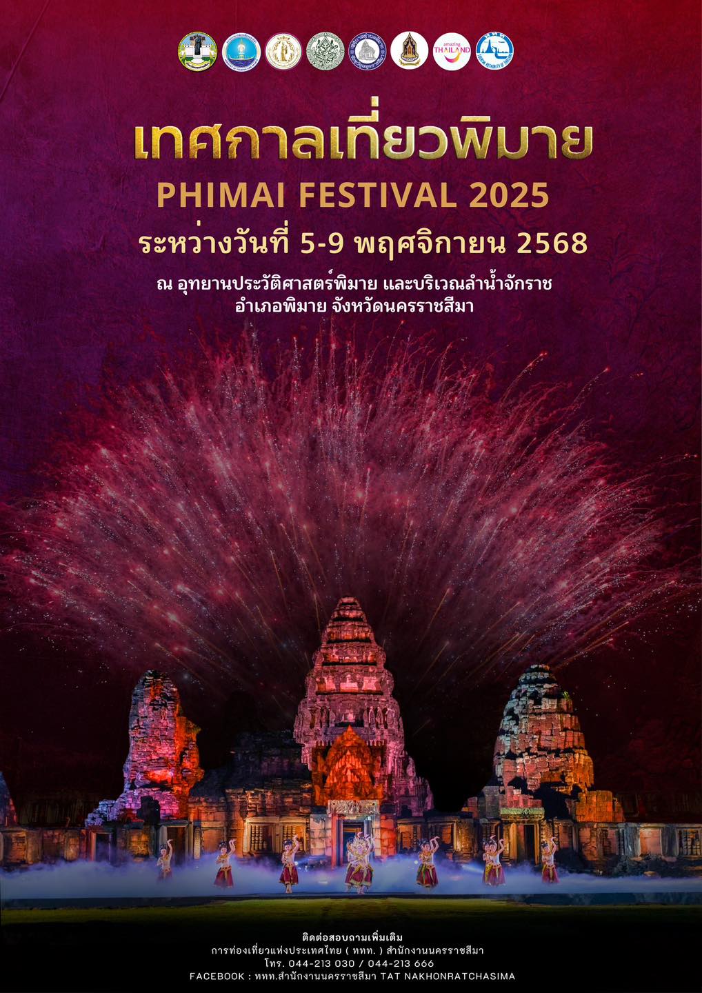 - การท่องเที่ยวแห่งประเทศไทยสำนักงานนครราชสีมา ขอเชิญทุกท่านร่วมงานประเพณีและวัฒนธรรมครั้งยิ่งใหญ่แห่งโคราช PHIMAI FESTIVAL 2025 เทศกาลเที่ยวพิมาย 2568