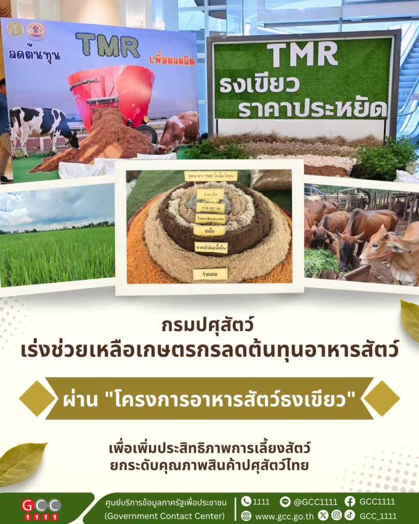 กรมปศุสัตว์ เร่งช่วยเหลือเกษตรกรลดต้นทุนอาหารสัตว์ ผ่าน “โครงการอาหารสัตว์ธงเขียว” เพิ่มประสิทธิภาพการเลี้ยงสัตว์และยกระดับคุณภาพสินค้าปศุสัตว์ไทย
