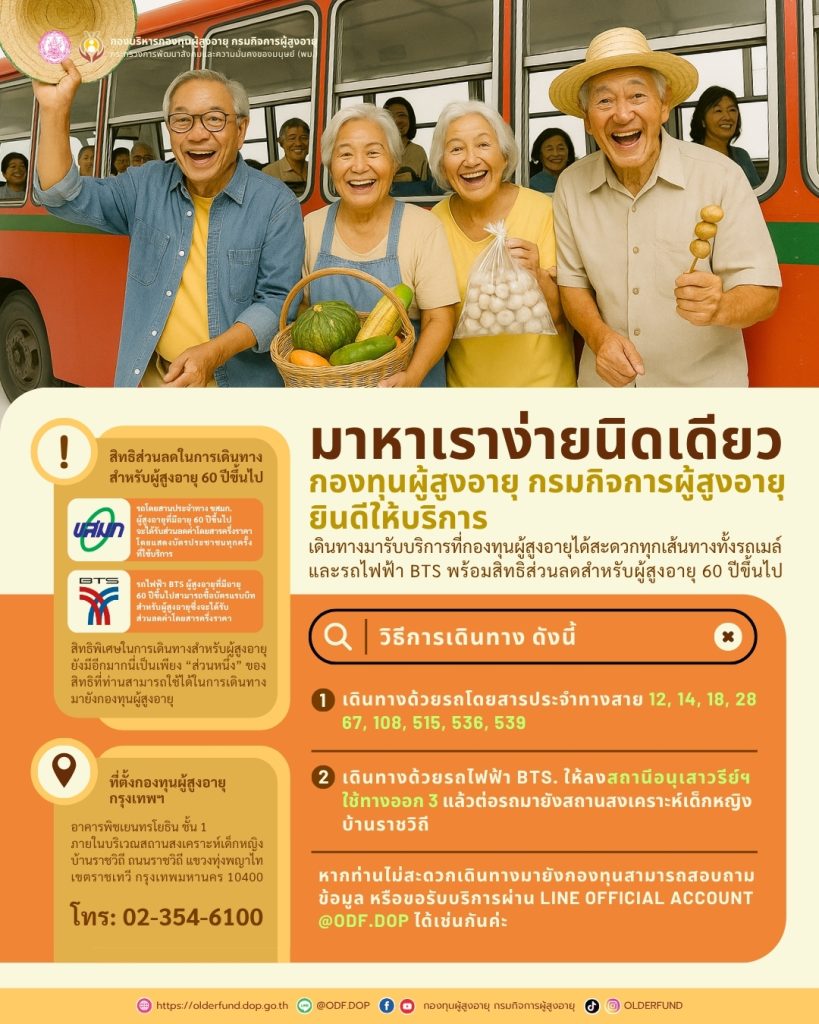 กรมกิจการผู้สูงอายุ แนะนำวิธีการเดินทางมารับบริการ ณ กองทุนผู้สูงอายุ กรุงเทพฯ