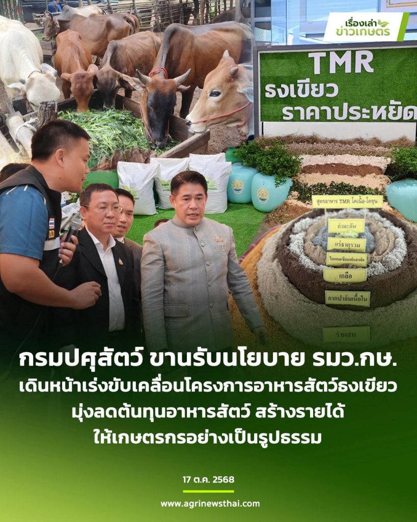 กรมปศุสัตว์ เร่งช่วยเหลือเกษตรกรลดต้นทุนอาหารสัตว์ ผ่าน “โครงการอาหารสัตว์ธงเขียว” เพิ่มประสิทธิภาพการเลี้ยงสัตว์และยกระดับคุณภาพสินค้าปศุสัตว์ไทย