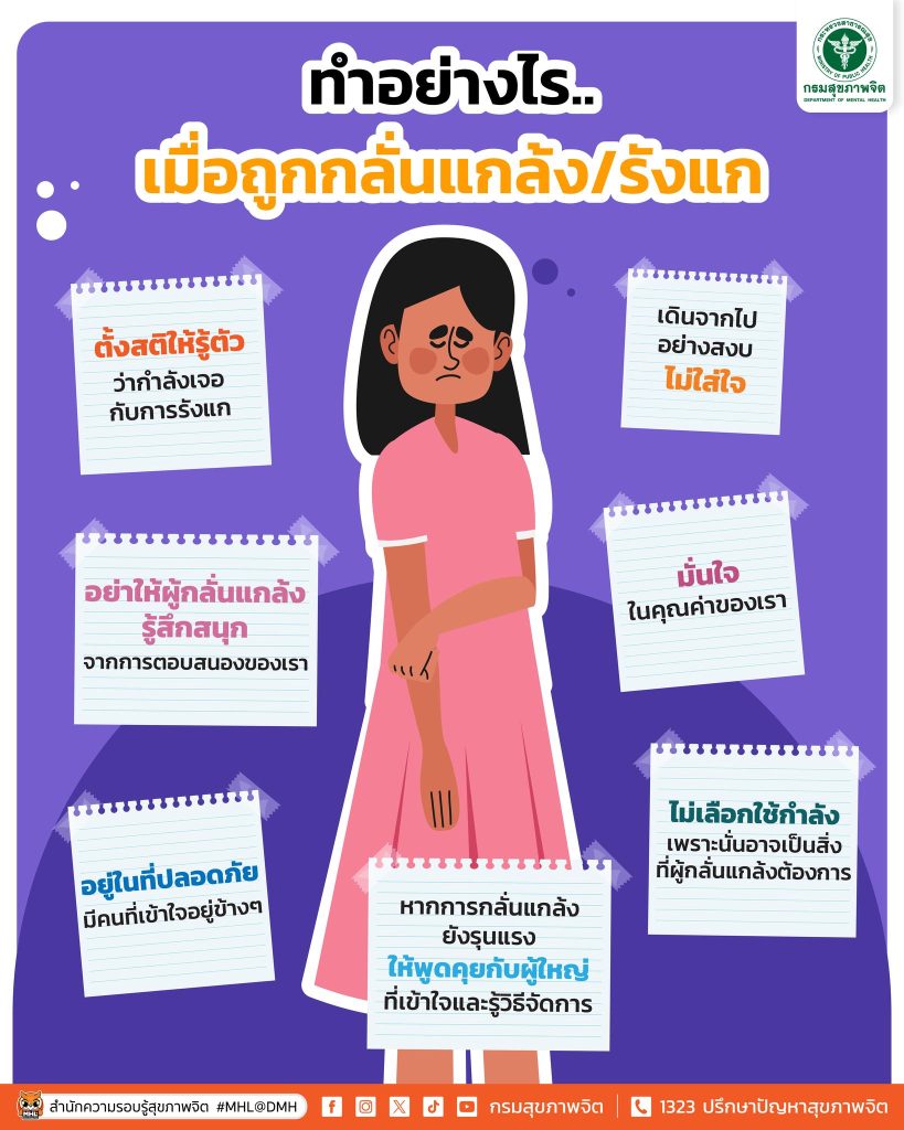 กรมสุขภาพจิต แนะนำ วิธีรับมือเมื่อถูกกลั่นแกล้งและรังแก