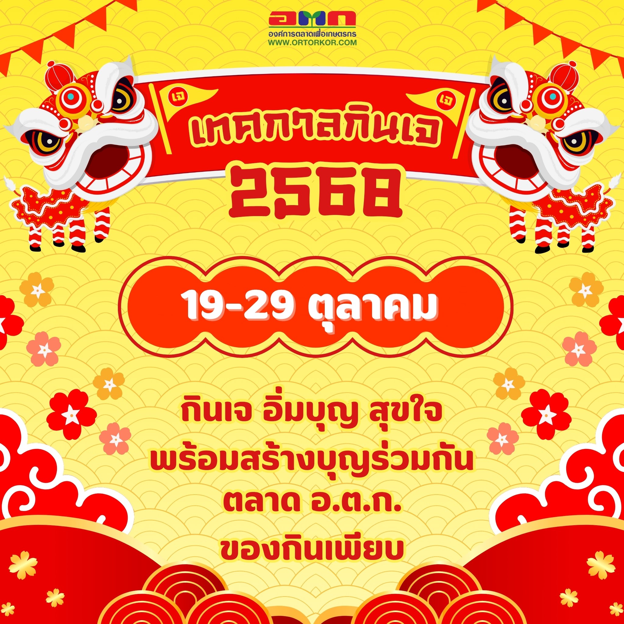 องค์การตลาดเพื่อเกษตรกร เชิญร่วมงานเทศกาลกินเจ ประจำปี 2568