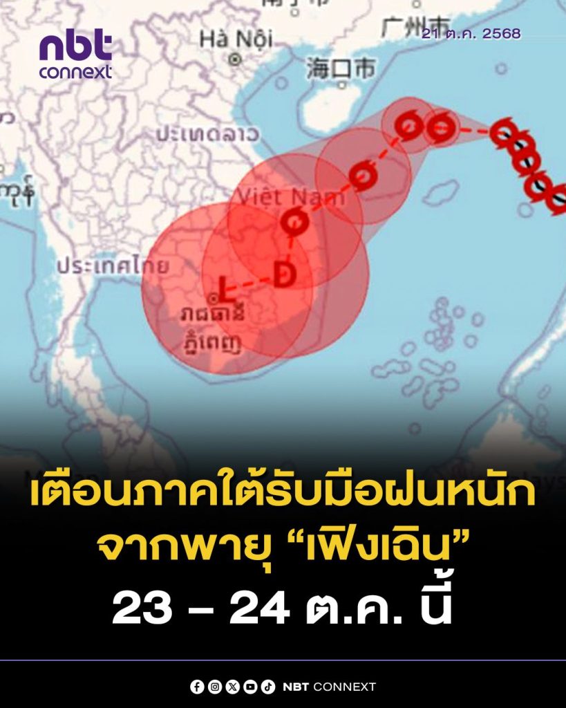 กรมชลประทาน เตือนประชาชนภาคใต้เฝ้าระวังและพร้อมรับมือฝนหนักจากพายุ เฟิงเฉิน