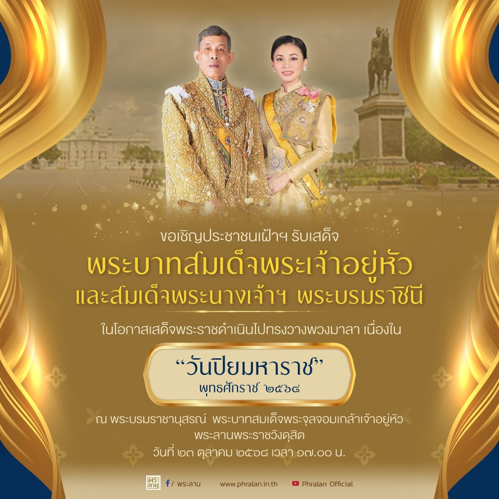 สำนักพระราชวัง ขอเชิญเฝ้าฯ รับเสด็จพระบาทสมเด็จพระเจ้าอยู่หัว เสด็จพระราชดำเนิน เนื่องในวันปิยมหาราช ข่าวสารกิจกรรม สำนักพระราชวัง ขอเชิญเฝ้าฯ รับเสด็จพระบาทสมเด็จพระเจ้าอยู่หัว เสด็จพระราชดำเนิน เนื่องในวันปิยมหาราช สำนักพระราชวัง ขอเชิญประชาชนเฝ้าฯ รับเสด็จพระบาทสมเด็จพระเจ้าอยู่หัว และสมเด็จพระนางเจ้าฯ พระบรมราชินี ในโอกาสเสด็จพระราชดำเนินไปทรงวางพวงมาลา เนื่องใน “วันปิยมหาราช” พุทธศักราช 2568วันพฤหัสบดีที่ 23 ตุลาคม 2568เวลา 17.00 น.ณ พระบรมราชานุสรณ์ พระบาทสมเด็จพระจุลจอมเกล้าเจ้าอยู่หัว พระลานพระราชวังดุสิต ที่มา : Facebook พระลาน Post Views: 69 FacebookFacebookXTwitterLINELine