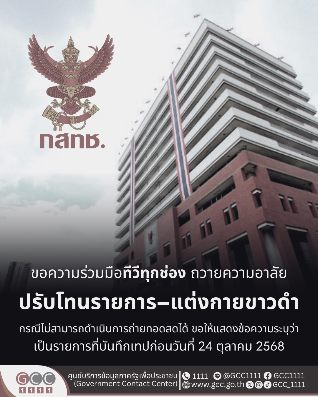 - กรณีที่ยังไม่สามารถดำเนินการตาม 1,2 ได้ ขอให้ขึ้นข้อความว่าเป็นรายการที่บันทึกเทปมาก่อนวันที่ 24 ตุลาคม 2568