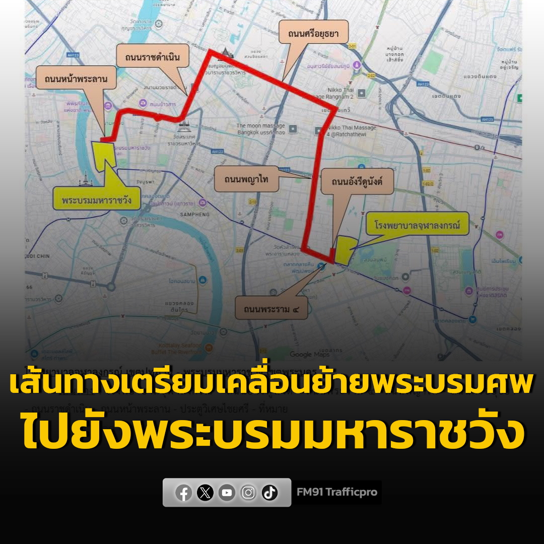 บช.น. แจ้งเส้นทางเคลื่อนขบวนพระบรมศพสมเด็จพระนางเจ้าสิริกิติ์ฯ ไปยังพระบรมมหาราชวัง วันที่ 26 ต.ค. 68