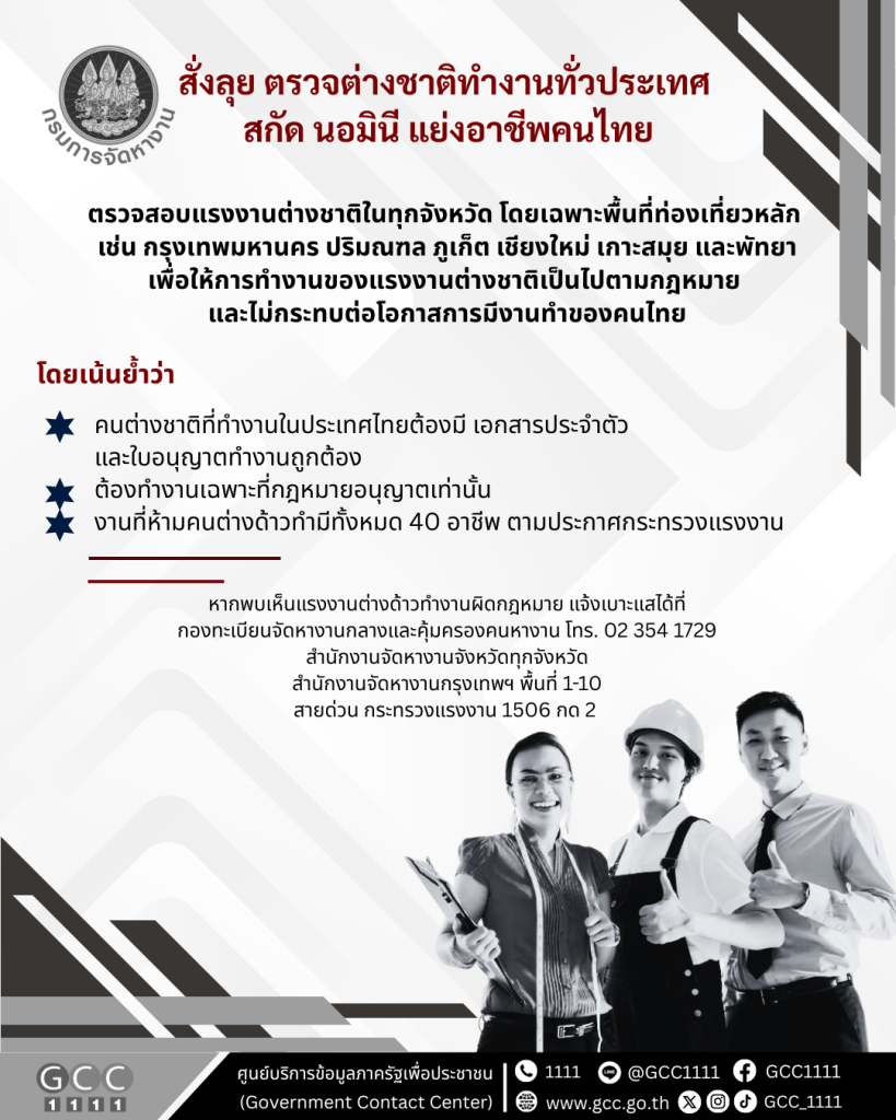 กรมการจัดหางาน สั่งลุย ตรวจต่างชาติทำงานทั่วประเทศ สกัด “นอมินี” แย่งอาชีพคนไทย