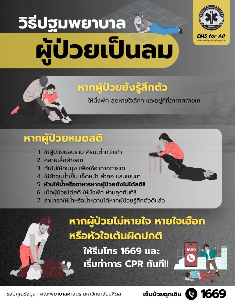 - ให้รีบโทร 1669 และเริ่มทำการ CPR ทันที