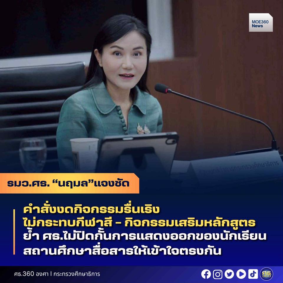 ศธ. ย้ำคำสั่งงดกิจกรรมรื่นเริงไม่กระทบกีฬาสี–กิจกรรมเสริมหลักสูตร ขอให้สถานศึกษาสื่อสารทำความเข้าใจตรงกัน