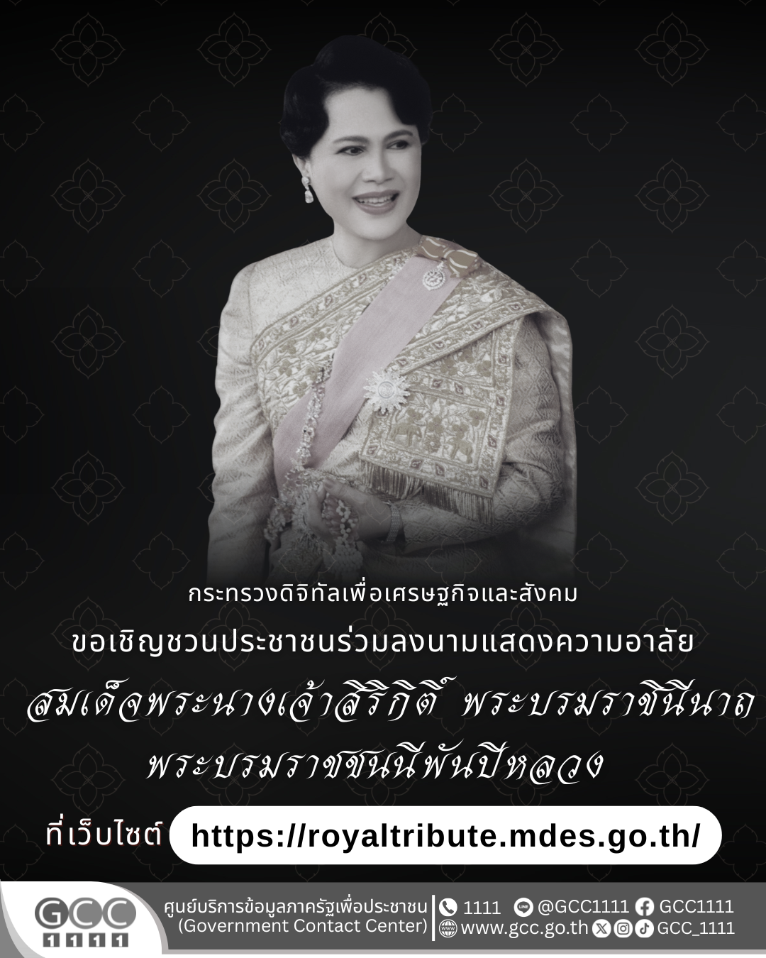 กระทรวงดิจิทัลฯ เชิญชวนร่วมลงนามแสดงความอาลัย สมเด็จพระนางเจ้าสิริกิติ์ฯ ผ่านระบบออนไลน์ ข่าวสารกิจกรรม, สมเด็จพระบรมราชชนนีพันปีหลวง กระทรวงดิจิทัลฯ เชิญชวนร่วมลงนามแสดงความอาลัย สมเด็จพระนางเจ้าสิริกิติ์ฯ ผ่านระบบออนไลน์ กระทรวงดิจิทัลเพื่อเศรษฐกิจและสังคม พร้อมหน่วยงานในสังกัด ขอเชิญประชาชนร่วมลงนามแสดงความอาลัย สมเด็จพระนางเจ้าสิริกิติ์ พระบรมราชินีนาถ พระบรมราชชนนีพันปีหลวง ที่เว็บไซต์ https://royaltribute.mdes.go.th/ ที่มา : Facebook depa Thailand Post Views: 39 FacebookFacebookXTwitterLINELine