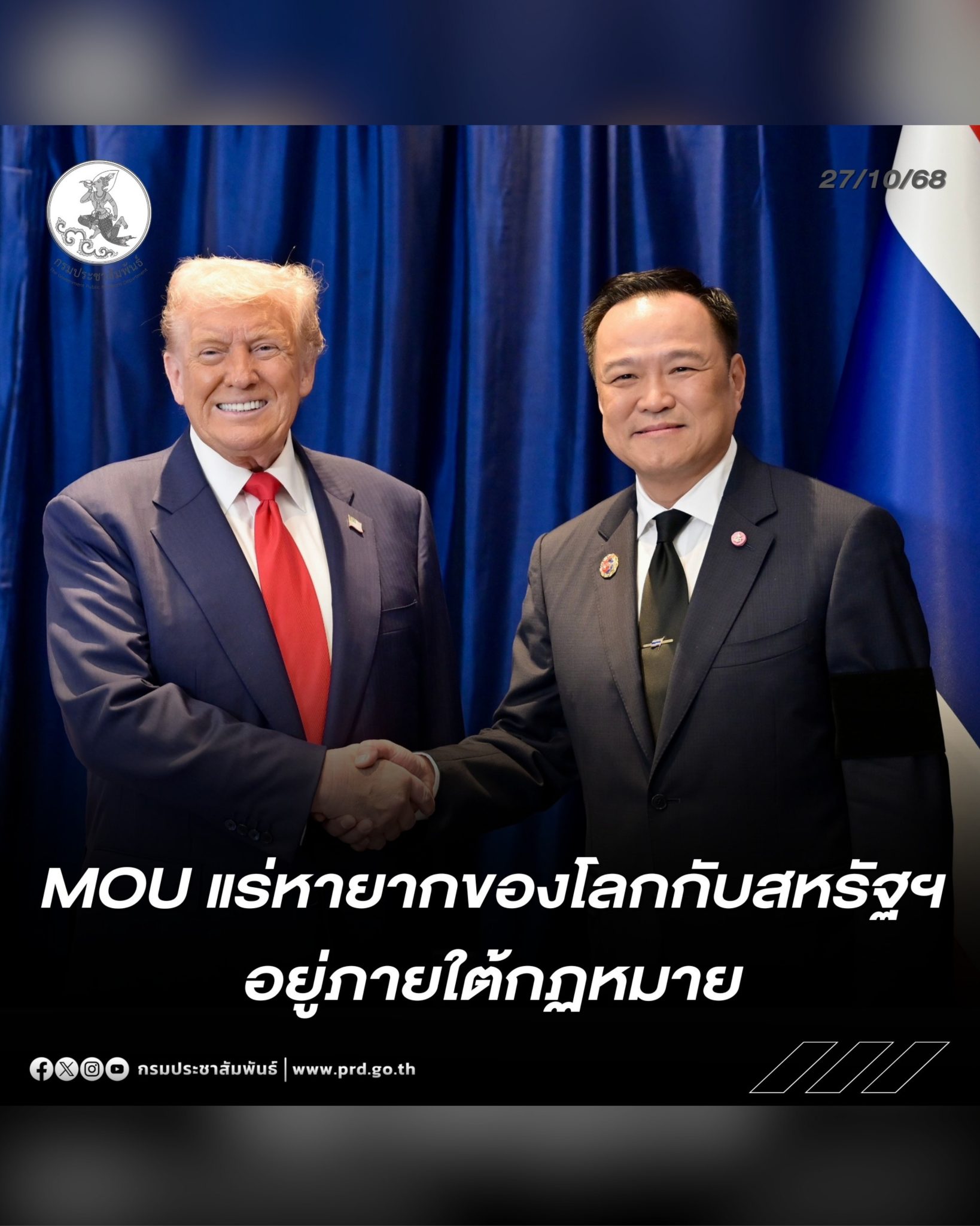 นายกรัฐมนตรี ชี้แจงกรณีการลงนาม MOU ความร่วมมือด้านแร่หายาก (Rare Earth) กับสหรัฐฯ ยืนยันว่า MOU เป็นเพียงความร่วมมือเบื้องต้นไม่มีผลผูกพันทางกฎหมาย หากไม่เกิดประโยชน์สามารถยกเลิกได้ และมองว่าการลงนามครั้งนี้เป็นสัญญาณดีในการฟื้นฟูและกระชับความสัมพันธ์ไทย–สหรัฐฯ อาจนำไปสู่การขยายความร่วมมือด้านเศรษฐกิจการค้าและการลดภาษีในอนาคต