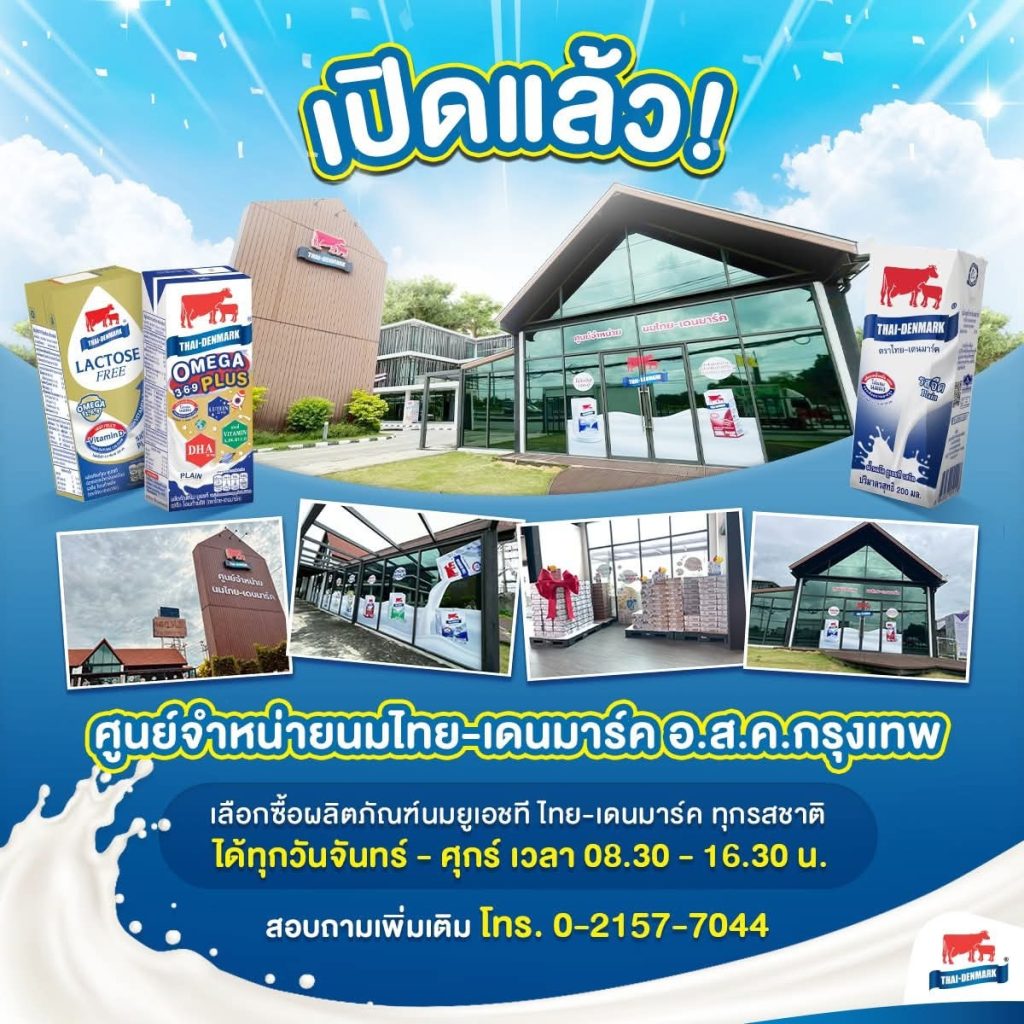 องค์การส่งเสริมกิจการโคนมแห่งประเทศไทย เปิดศูนย์จำหน่ายนมไทย-เดนมาร์ค ทั้งปลีกและส่งอย่างเป็นทางการ ณ สำนักงาน อ.ส.ค. ปทุมธานี (ติดตลาดไท) สามารถเลือกซื้อผลิตภัณฑ์นมยูเอชที ไทย-เดนมาร์ค ทุกรสชาติ ได้ทุกวันจันทร์-ศุกร์ เวลา 08.30 – 16.30 น.